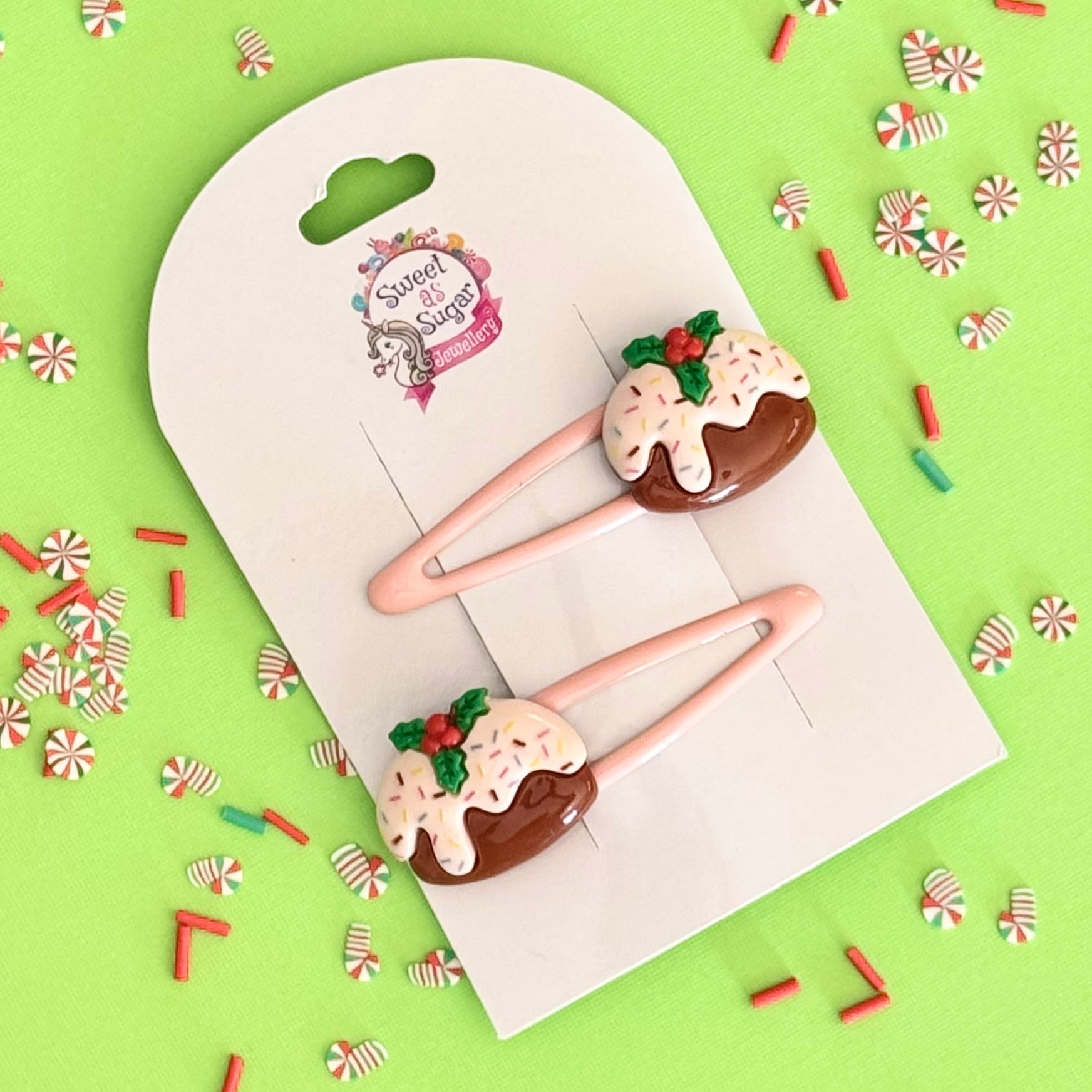 The perfect finish to any Christmas hair style with these adorable pudding hair clips